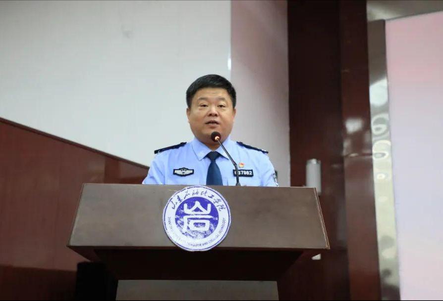 东营市公安局四级高级警长袁明道,东营市公安局出入境管理支队政委张永廉,东营区委组织部副部长、区综合考核服务中心主任郭玉海,市公安局东营分局领导孙振平、孙涛;学校安保处负责人侯曙光、大数据与基础科学学院相关负责人、师生代表参加了活动。