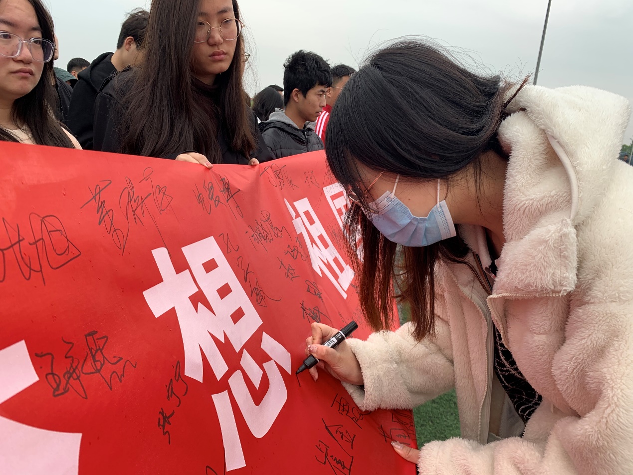 活动第三项,进行启动签名仪式。我院同学在横幅签上自己的名字,相信在红色精神的引领下,我院学生们将进一步坚定理想信念,以实际行动和良好的精神面貌迎接建党100周年,为实现“两个一百年”奋斗目标、实现中华民族伟大复兴的中国梦贡献青春力量。
