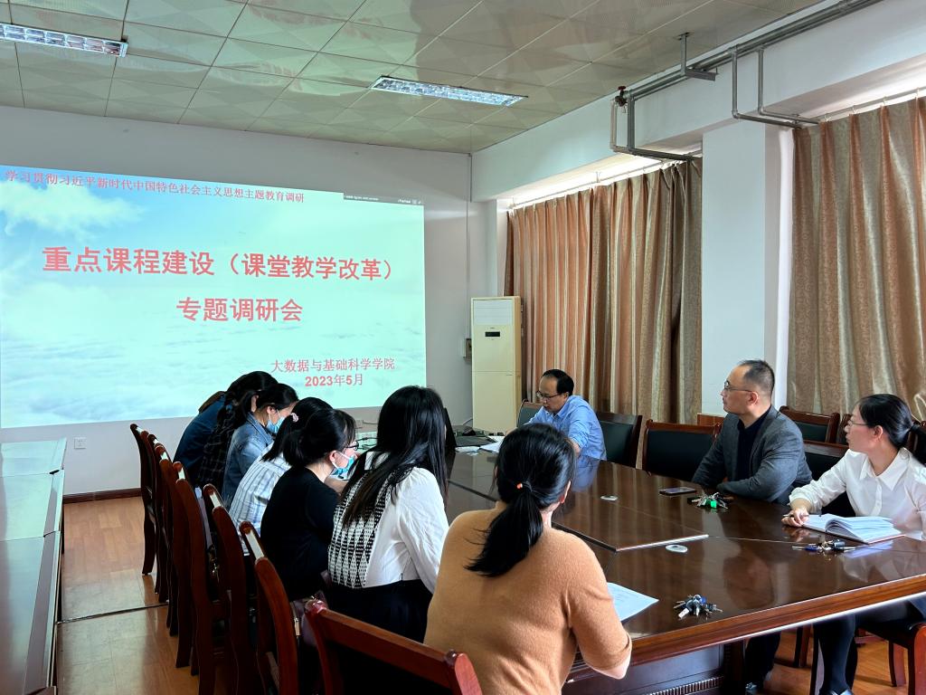 为推动学习贯彻习近平新时代中国特色社会主义思想主题教育走深走实,根据学院主题教育调研计划,5月12日下午,学院党总支在615会议室召开了重点课程建设(课堂教学改革)专题调研会,学院党总支委员孙涛、学院重点课程建设负责教师参加了调研活动。