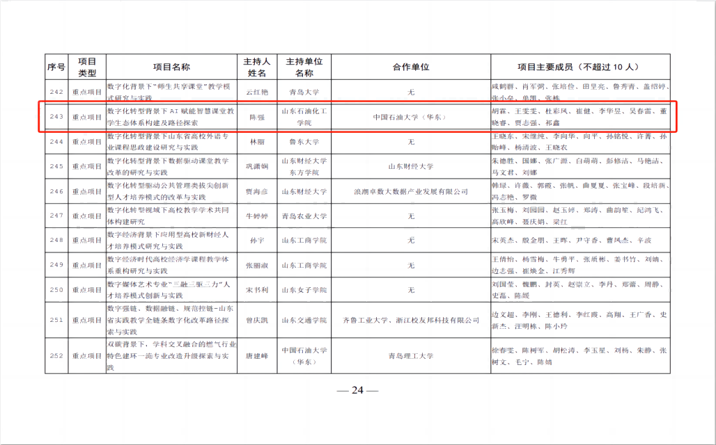 近日,山东省教育厅公布了2023年度本科教学改革研究项目立项名单,我院陈强副教授主持的《数字化转型背景下AI赋能智慧课堂教学生态体系构建及路径探索》获批重点项目立项。