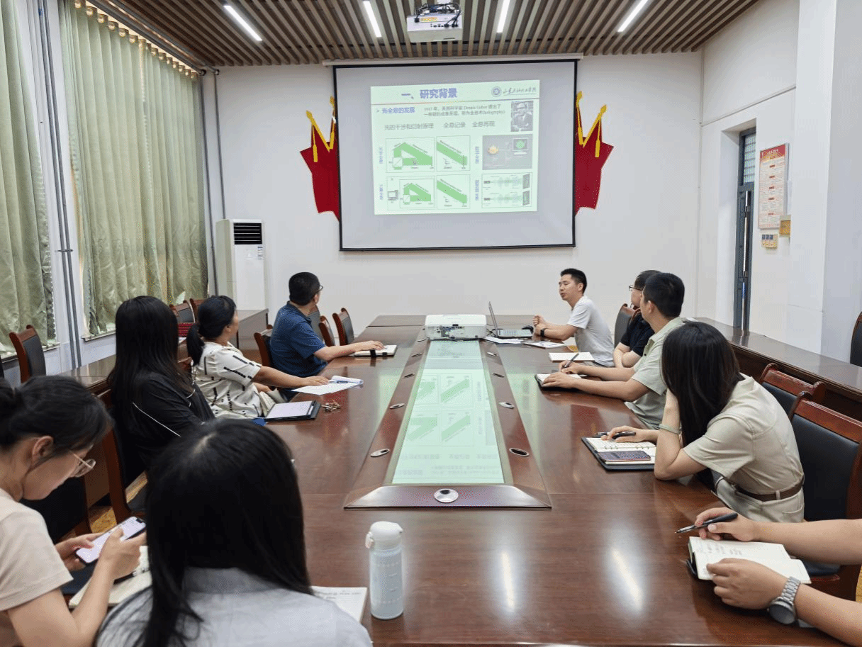 活动伊始,张福荣博士以“基于微纳结构的全息加密与全息显示研究”为题展开报告。在微纳光学与全息光学领域,他深入阐释微纳结构如何赋能全息加密与显示技术突破,从原理创新到潜在应用场景,为在场教师呈现了全息技术发展的新可能,引发对信息安全与新型显示技术融合的思考。