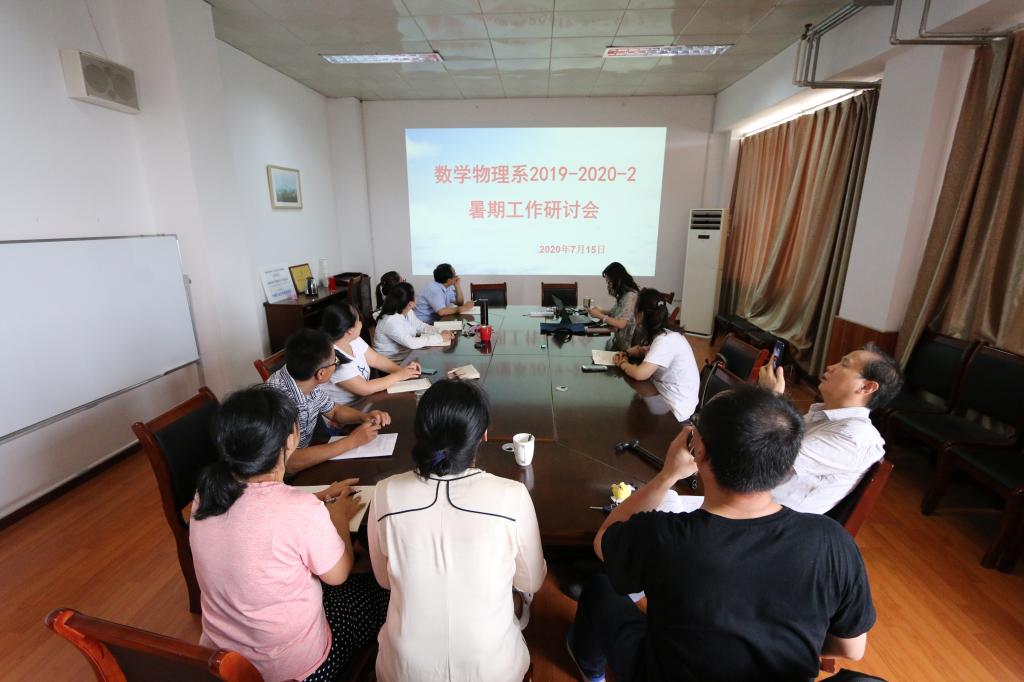 7月15日下午,数学物理系按照学院安排,在石大校区主楼615召开了2020年暑期教学研讨会。基础科学学院副院长孙涛及数学物理系教师参加会议,会议由系主任武斌主持。