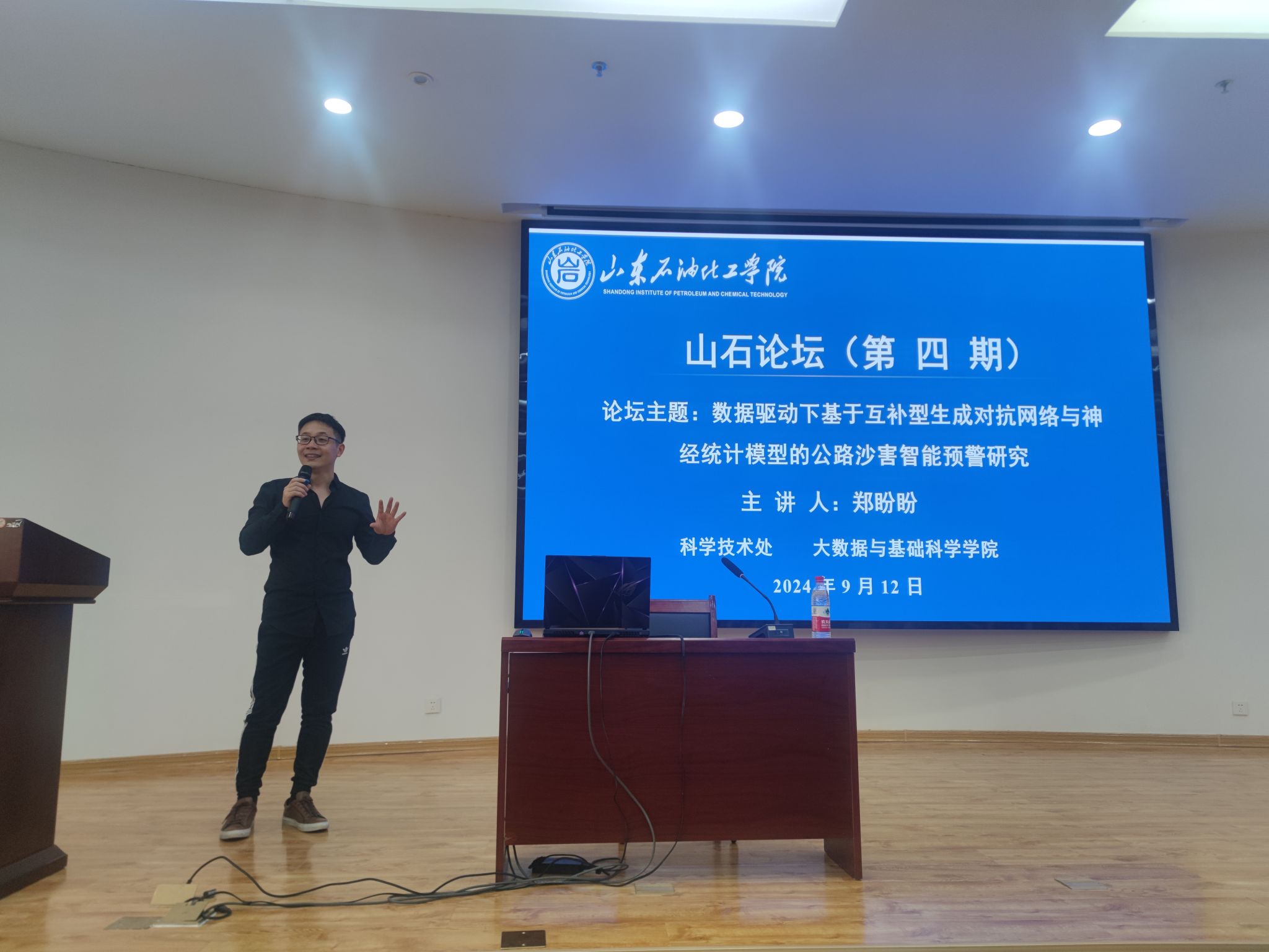 9月12日下午,由科学技术处主办,学院承办的第四期“山石论坛”成功举行。论坛邀请新疆大学异常检测领域专家郑盼盼教授作了题为《数据驱动下基于互补型生成对抗网络与神经统计模型的公路沙害智能预警研究》的专题报告,论坛由学院副院长崔健主持,部分师生代表参加了本次活动。
