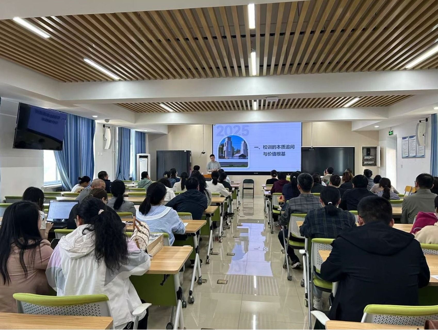面向教师,学院邀请学校校训精神宣讲团成员李天宇老师围绕“校训的本质追问与价值根基”“校训精神的历史渊源与时代内涵”以及“明德力行筑基业,求实创新向未来”等三个部分对校训精神展开解读,深入讲解了学校自建校特别是转设以来的发展历程,阐释了校训精神的形成背景、核心内涵及其在不同历史阶段的体现,以及校训精神在推动学校高质量发展、服务社会中的重要意义。