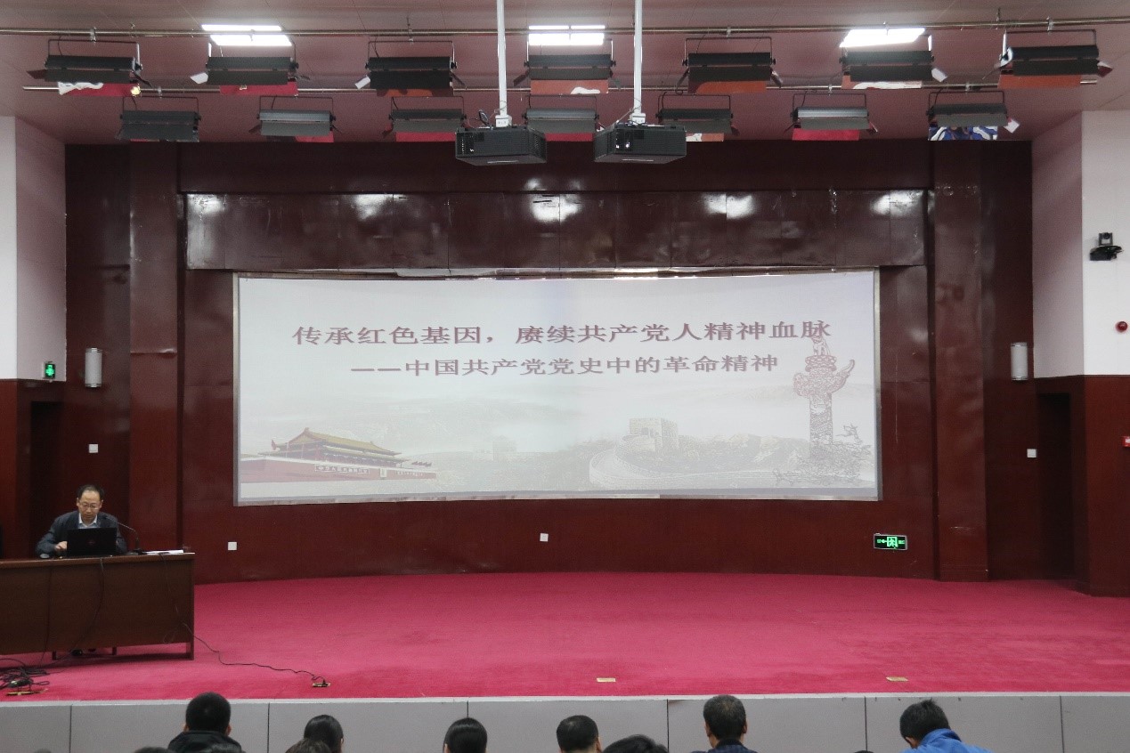铭记百年党史,砥砺奋进前行。4月14日,我院党总支书记杨树林以《传承红色基因,赓续共产党人精神血脉——中国共产党党史中的革命精神》为题,在石大校区音乐厅为我院全体党员上了一堂生动、深刻的党史专题党课。本次党课学习由我院党总支副书记陈晓楠主持,我院全体师生党员参加。