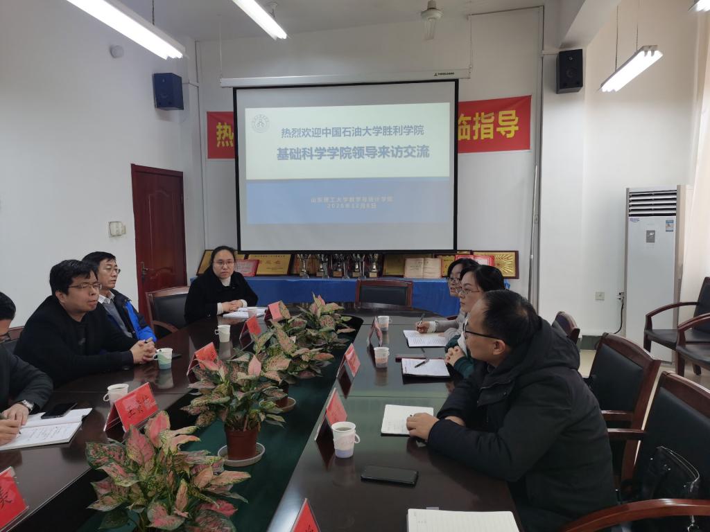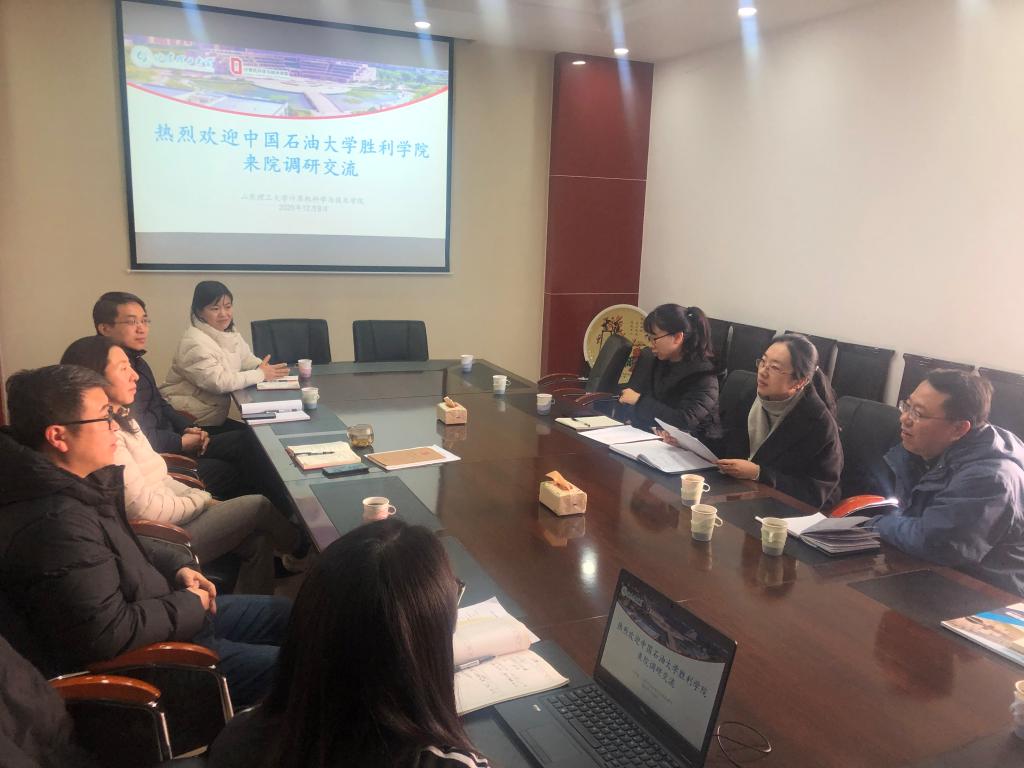 12月8日,基础科学学院副院长孙涛、信息技术系主任刘颖、数学物理系系主任武斌及部分专业教师一行8人赴山东理工大学进行调研学习。山东理工大学计算机科学与技术学院副书记钟丽霞、数学与统计学院副院长王贵栋等领导和教师热情接待了调研组并组织了座谈交流。