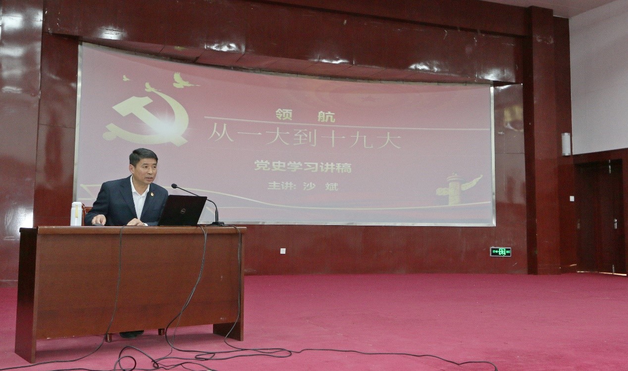 沙斌报告的主题为“领航:从一大到十九大”。他通过回望党的一大到十九大的历程,以丰富的史实介绍了每次党代会的复杂背景、面临的主要问题、大会的主要内容,作出的重要决策以及影响。同时,他把党代会与党章结合起来,系统地梳理和讲述了党章的发展变化。