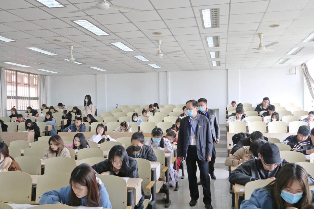 全国大学生英语竞赛(NECCS)初赛于4月24日上午9:00-11:00在我校第四教学楼成功举行。我校考点共设52个考场,全校共1512名学生报名参加,分别涵盖了包括B类英语专业组、C类非英语专业组和D类艺术专业(非英语专业专科)组三个类别。竞赛期间,基础科学学院执行院长杨树林到场巡视。
