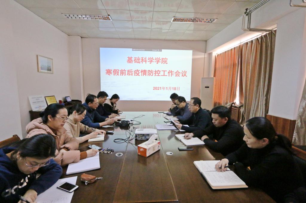 1月18日,学校疫情防控会议结束后,为加强学院寒假前后疫情防控工作,切实保障师生员工生命安全,1月18日下午,在主楼615会议室召开了基础科学学院寒假前后疫情防控工作会议,会议由执行院长、党总支书记杨树林主持,副院长、副书记和系(部、办)主任副主任参加了会议。会议传达了学校疫情防控会议精神,分析当前疫情防控形势,对我院疫情防控工作进行再安排、再部署、再落实。