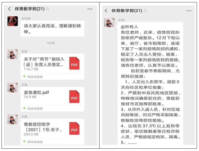 会议强调,一是要认清当前疫情防控形势,各系(部、办)要深刻认识当前疫情防控形势的严峻性和不确定性,坚决克服懈怠思想、侥幸心理、麻痹心态和厌战情绪,严格落实科学精准防控措施,毫不松懈抓好疫情防控工作,慎终如始守好学校疫情防线;二是要强化疫情防控措施,严格落实学校疫情防控工作要求,强化师生员工新“四类人群摸排监测,切实做到应报尽报”“应检尽检。三是要加强假期健康管理和居家学习生活指导,全面掌握师生员工出行信息,落实居住地相关管控措施,注重人文关怀、思想引导和心理疏导。四是要严格抓好假期校园疫情防控,执行假期领导带班和24小时值班制度,严格执行日报告”“零报告制度,保障学校疫情防控指挥体系正常运转。五是要严格执行外出报备和请假制度,假期离开或者返回东营市的教职工需提前3天向所在社区网格员和系(部、办)主任报备;六是要提前谋划春季学期开学,科学制定开学返校方案,完善线上线下教学模式切换预案。七是部署寒假工作安排,以“部门集中汇报+分头专项研讨方式进行工作研讨。