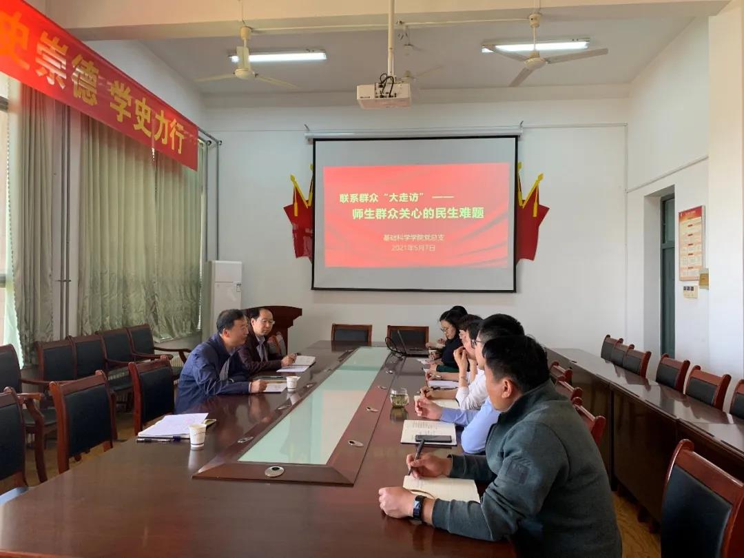 为深入开展“我为群众办实事”实践活动,5月7日下午,学校领导徐月利到基础科学学院开展联系群众“大走访”,与学院师生代表面对面进行座谈交流,排摸梳理师生关切的民生问题。