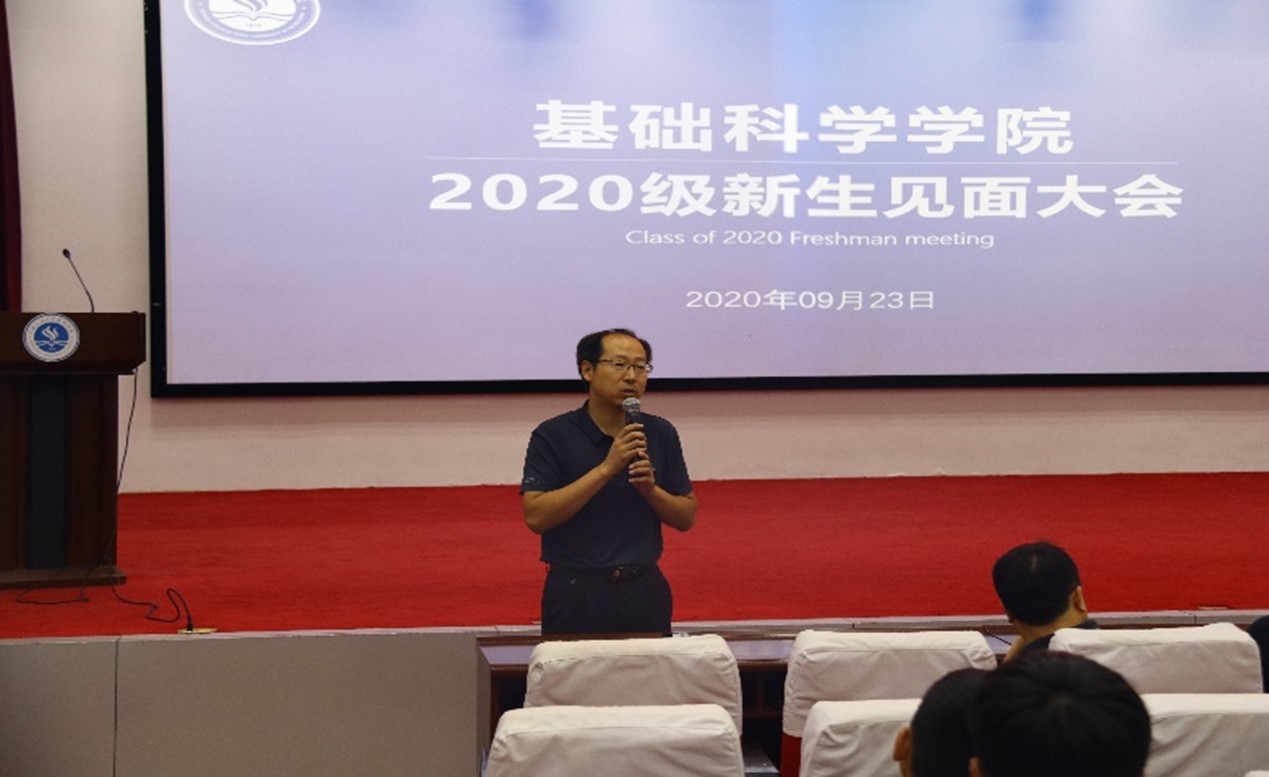 9月23日18:30,基础科学学院在学术报告厅召开了“青春如是 逐梦基科”——2020级新生见面大会。学院执行院长兼党总支书记杨树林,副院长孙涛、副院长尹键,党总支副书记陈晓楠以及各系部主任、综合办公室主任、学工办主任及辅导员老师出席本次大会,2020级全体新生到场聆听。