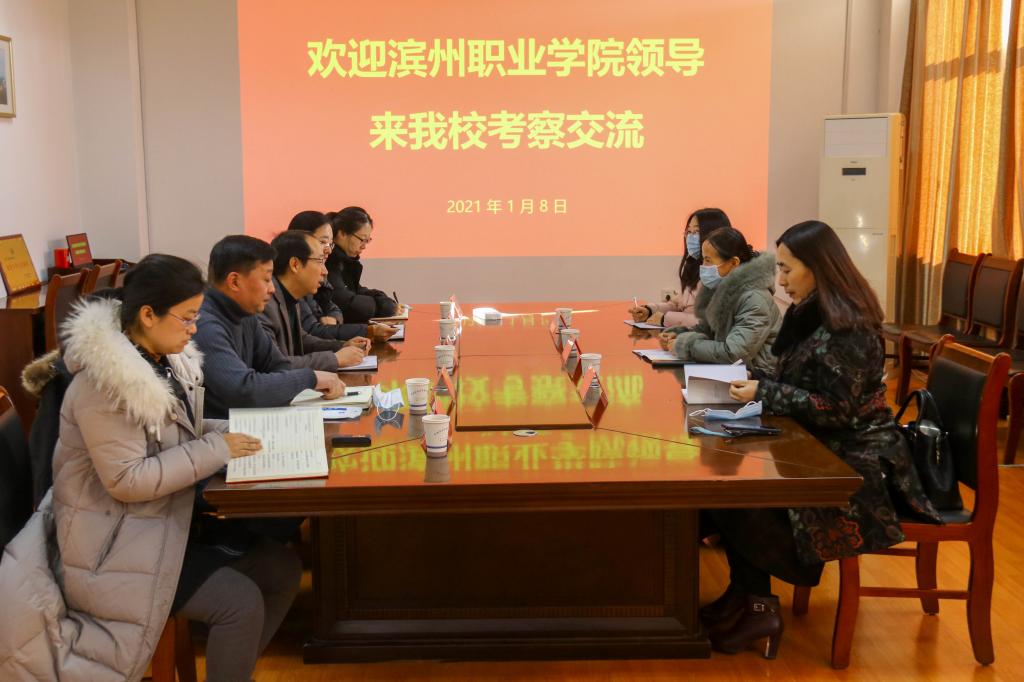 1月8日上午,滨州职业学院信息工程学院一行3人在院长李莉的带领下,就计算机类实验室建设工作来我院考察交流。我院党总支书记、执行院长杨树林,副院长崔浩,信息技术系主任刘颖等热情接待了来宾,并陪同参观交流。