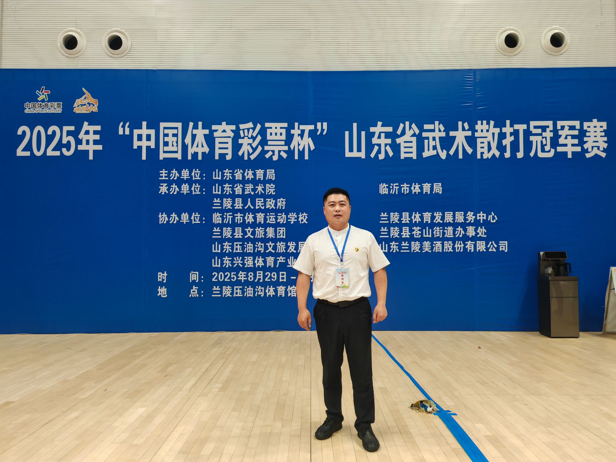9月4日,2025年山东省武术散打冠军赛在临沂兰陵圆满落幕。本次赛事由省体育局主办,省武术院、临沂市体育局、兰陵县人民政府共同承办。学院教师刘含辉参加此次赛事裁判工作。