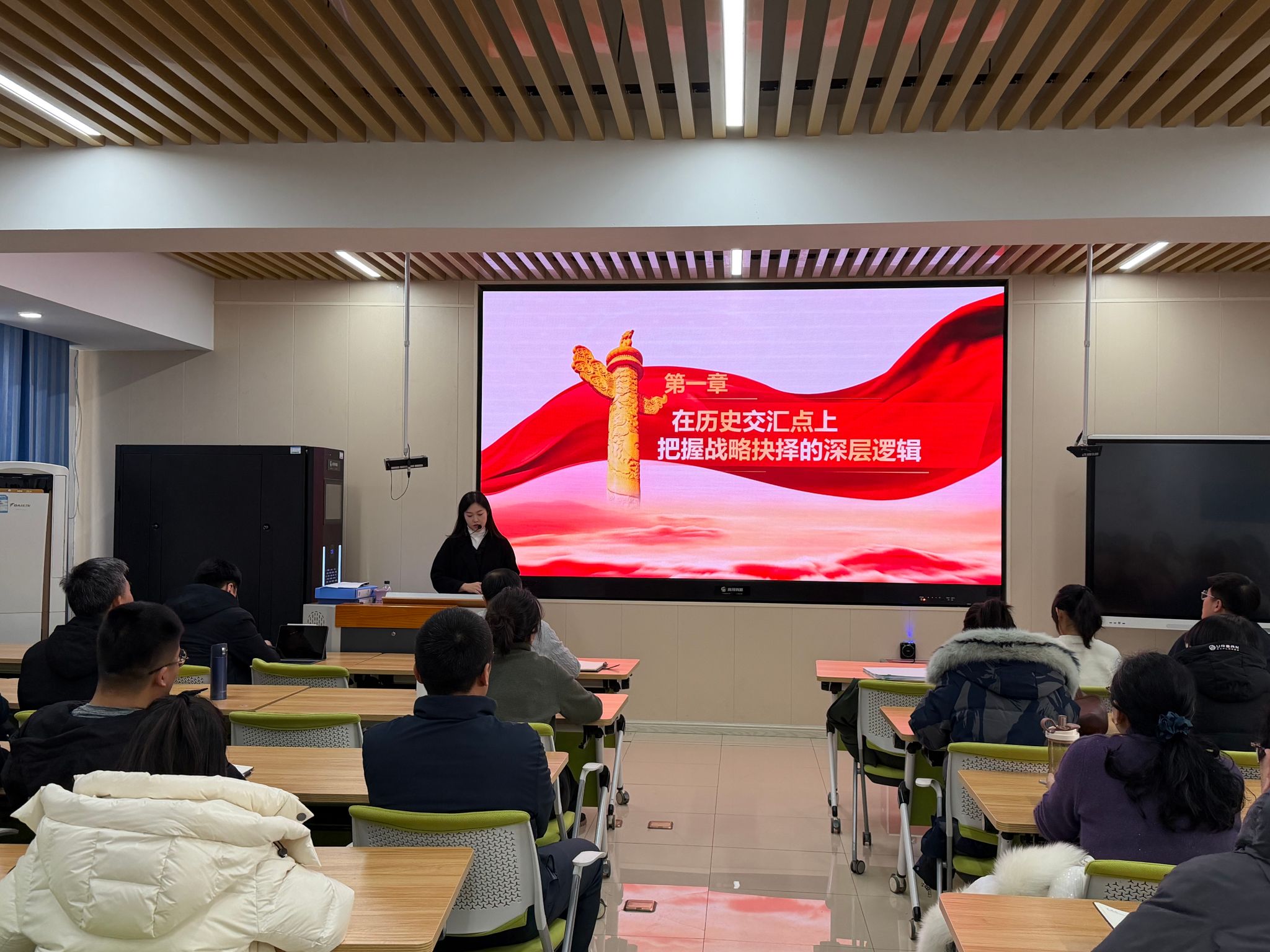 为推动党的二十届四中全会精神深度融入教学科研实践,切实把全院教职工的思想和行动统一到党中央战略部署上来,1月9日,学校学习贯彻党的二十届四中全会精神宣讲团成员、马克思主义学院伍佳慧老师受邀到学院作了题为《深学笃行党的二十届四中全会精神 接续推进中国式现代化》的专题宣讲报告。学院全体教职工参会。