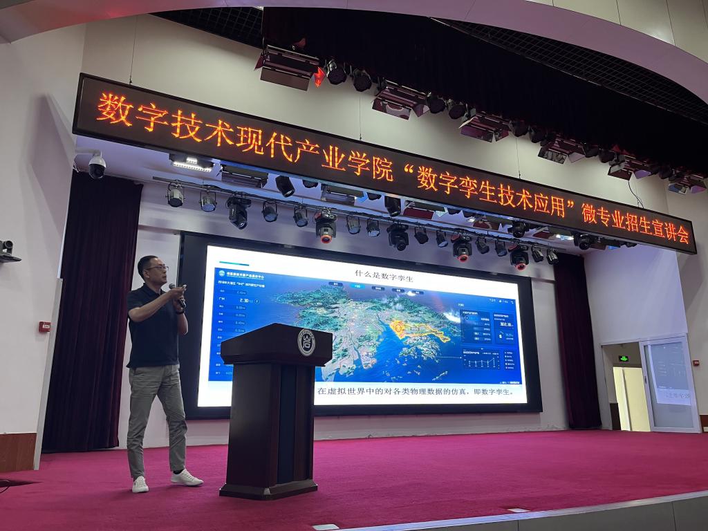 6月14日下午,数字技术产业学院首届数字孪生技术应用微专业招生宣讲会在100号学术报告厅召开,学院副院长崔浩、山东悦融数字产业发展有限公司市场总监帅军等出席此次宣讲会。