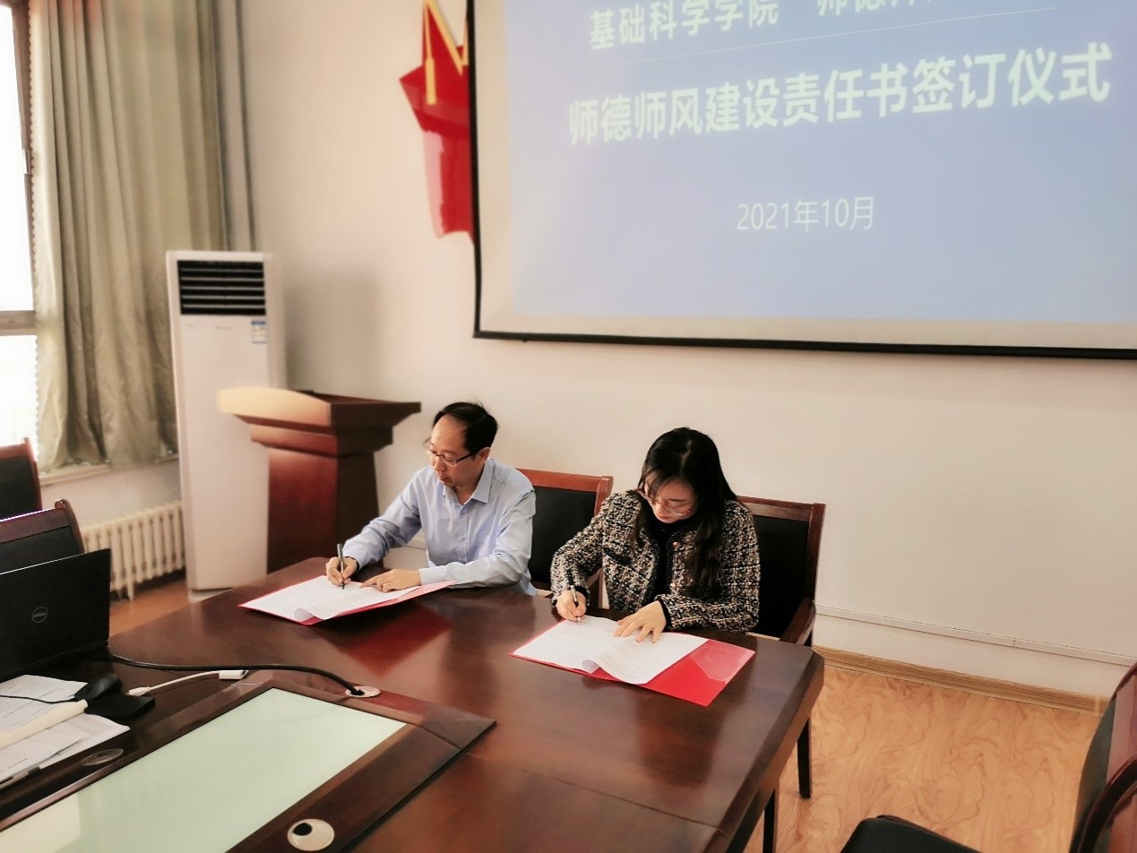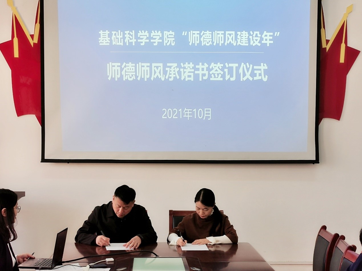 会上,杨树林代表学院与各系部(办)主要负责人、教师代表分别签订《基础科学学院2021-2022学年师德师风建设责任书》《基础科学学院2021-2022学年师德师风建设承诺书》,这是学院为加强师德师风建设而开展的履职践诺活动。
