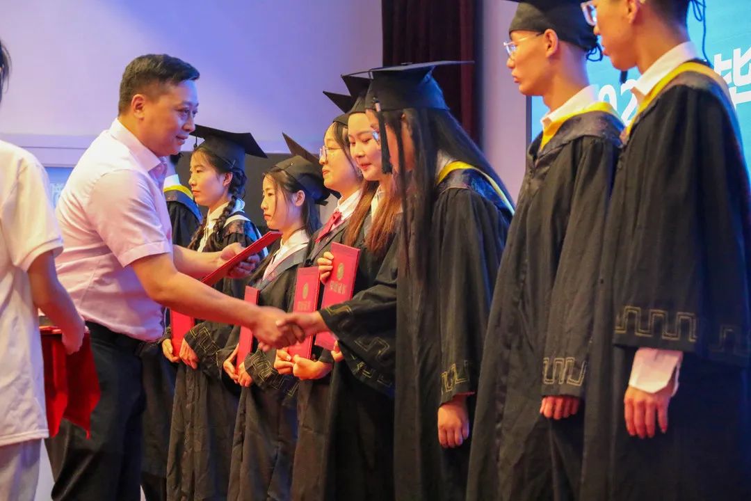 学院执行院长杨树林真情致辞。他满怀期望又深情嘱托,做一个身心健康的人,用好的体魄为中华民族伟大复兴而奋斗;做一个有责任心的人,大道至简,实干为要,他希望毕业生们始终脚踏实地、仰望星空,努力成长为国家栋梁之才;做一个终身学习的人,新一代青年要树立终身学习的理念,不断提升自己报效祖国、服务社会的基本能力,在学习中发现快乐,在快乐中做出成绩,在成就中收获人生,最后祝愿毕业生们奋勇向前,成就卓越人生,更欢迎大家常回家看看。