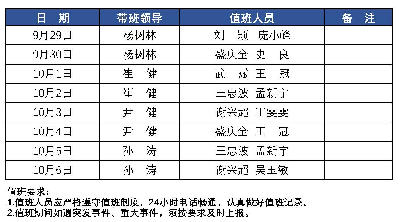 2023年国庆节大数据与基础科学学院(马克思主义学院) 值班表