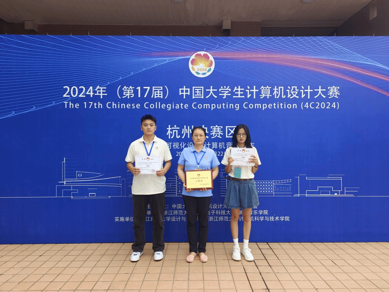 近日,由中国大学生计算机设计大赛组织委员会主办、浙江师范大学等校承办的2024年第17届中国大学生计算机设计大赛国赛在浙江师范大学举行。由学院张莉教师指导,学生郭咏琪、马治昆、郭阳、庞明鑫、廖福忠完成的参赛作品,在总决赛中荣获三等奖。